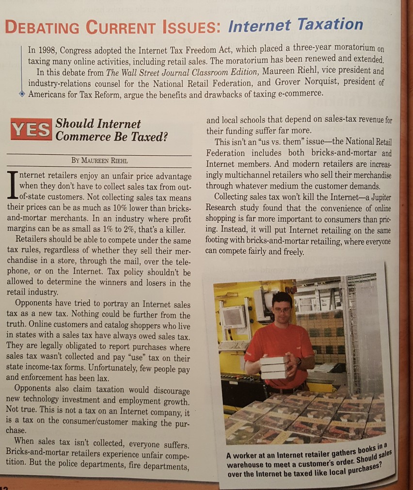 Solved Debating Current Issues Internet Taxation In 1998 Chegg Com
